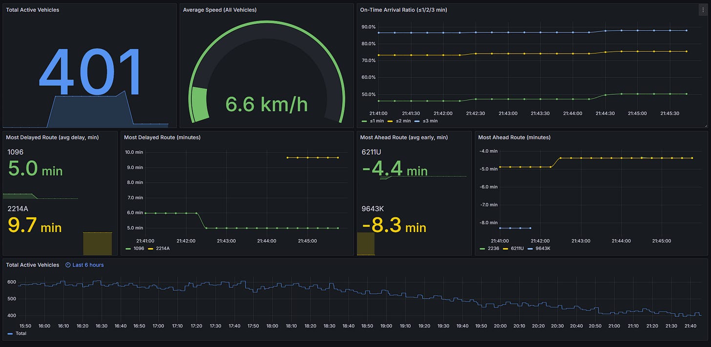 Building this project was like watching a city breathe in real time. At one moment, you see the busy rush hour; at the next, the quiet of 3 AM with only a few buses running.