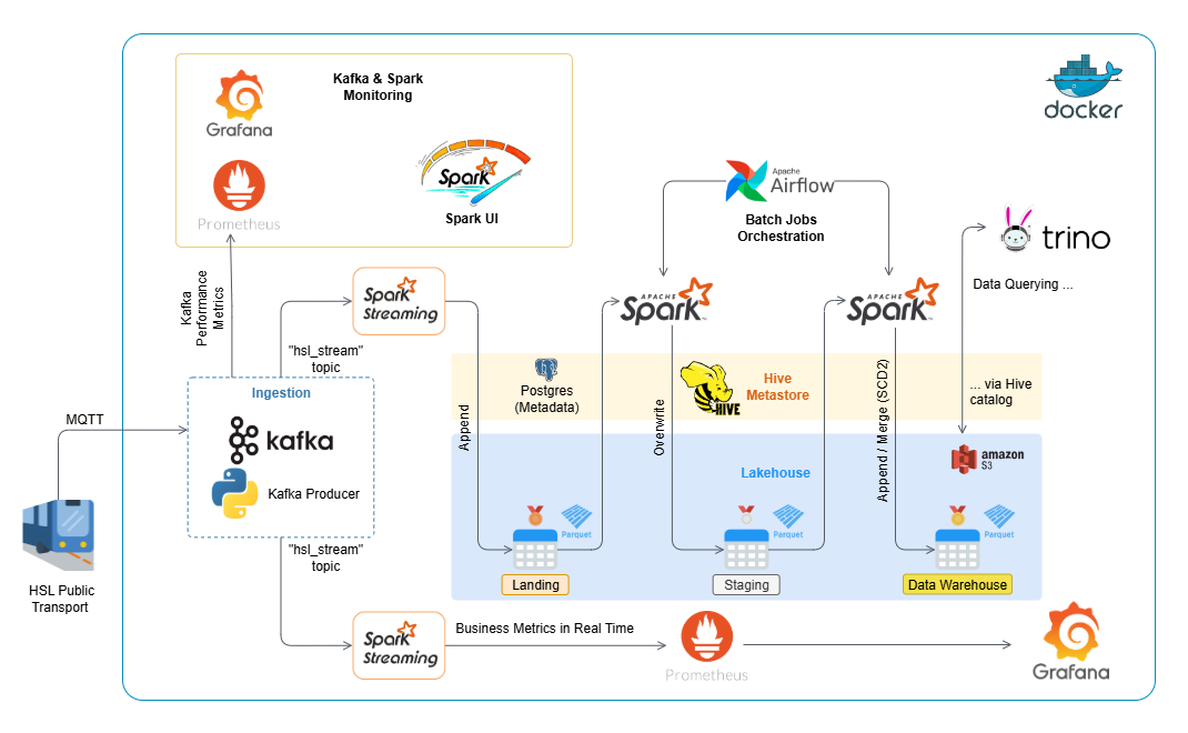 While this project is demonstrated using public transport data, the underlying streaming Lakehouse design is applicable to a wide range of industries, particularly those that need to process millions of events per day in a cost-effective, open-source environment: